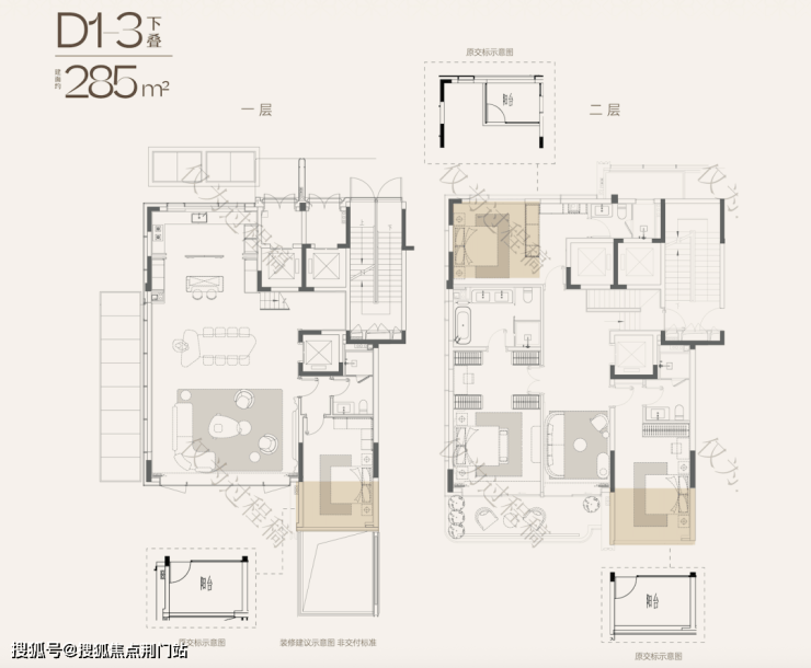 ☝天澜传序府建面约285方下叠户型效果图