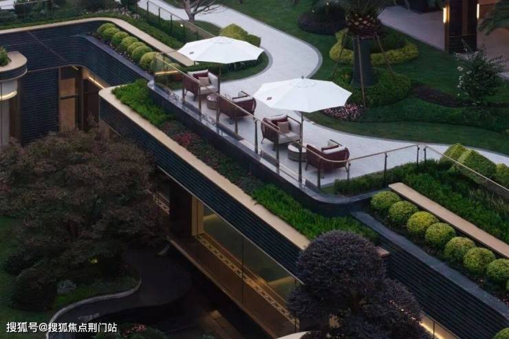 以后这条园林中轴线的景观层次感,还会更丰富,因为下沉式庭院另一边的高层区,还专门做了部分抬高设计,把花园架到了空中。
