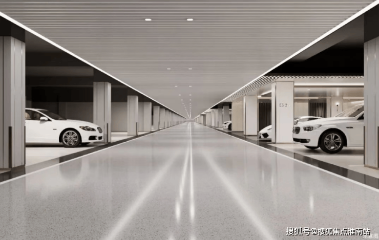 4.2米层高地库,空间开阔,彰显气度; 星空顶车行入口,开启每一次归途的仪式感; 1:1.8车位比,为业主勾勒出一幅便捷、从容的生活图景。