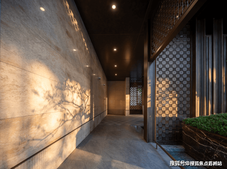 项目归家门庭沿街展面视觉冲击力极强,采用圣罗兰奢石、白雪公主透光玉石、巴玉曼米黄大理石,多种优质材质巧妙组合,精心打造业主归家动线。