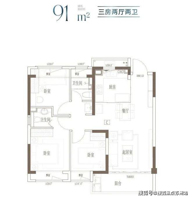 3开间朝南+客餐厅连通阳台+全卧室飘窗,以及套房式主卧设计+2卫,即使是三代同堂,也能让生活从容。