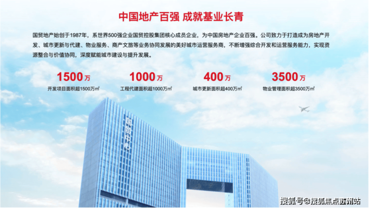 旗下的国贸地产,为国贸股份全资子公司,始创于1987年,连续9年荣获“中国房地产开发企业100强”、连续3年获得“中国房地产开发企业运营效率10强”和“中国房地产开发企业品牌价值华东10强”,拥有“金钥匙”品牌商标。