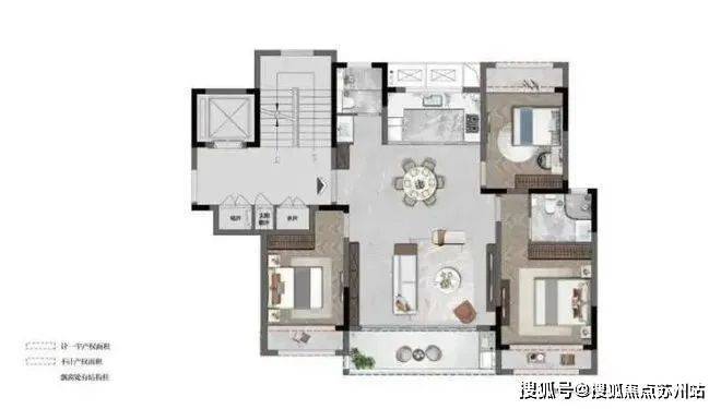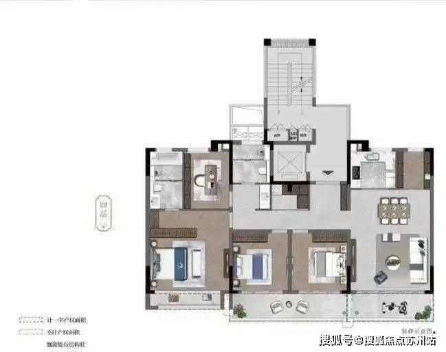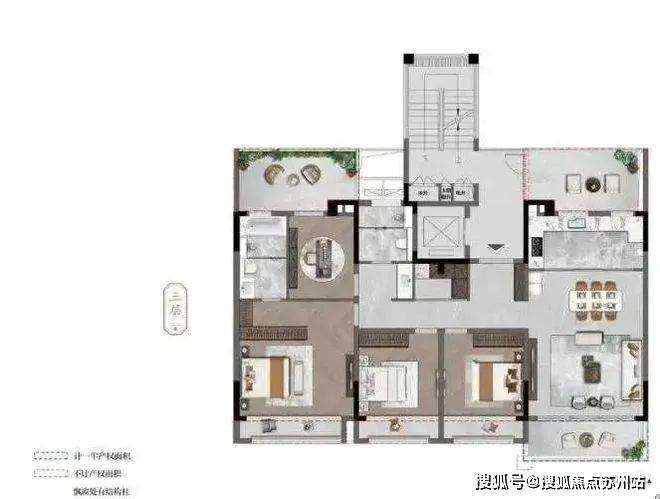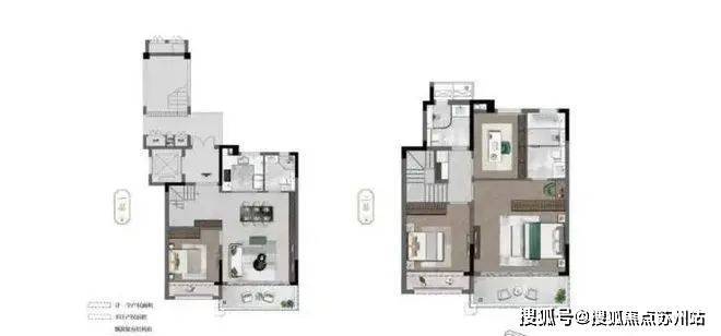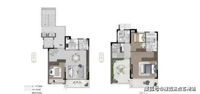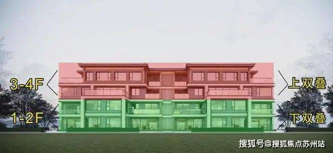 户型方面特别值得一提,几乎是苏州叠墅的新物种,布局上做了大胆的创新,打破了2层一叠的传统,中间做了平层户型。