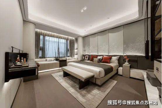 餐客厅 一体化设计,让室内享有更充沛的采光的同时,极大地延伸了整个空间的边界和景观视野。主卧套房采用观景飘窗设计,扩大了室内的采光视野,更大大地增加了空间使用率和通透性。独立卫生间、衣帽间等设计,让整个空间享受星级酒店般私密尊荣。