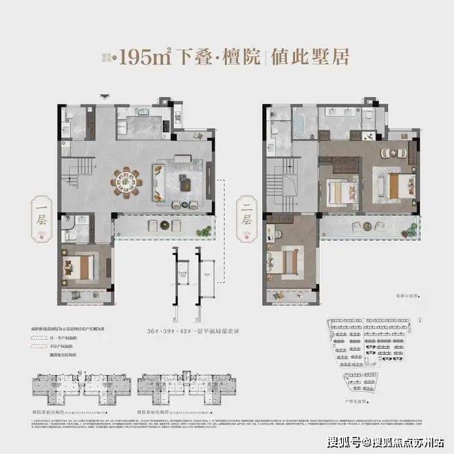 1、建面约195㎡下叠,总高仅4层+大横厅+合院级墅感+全朝南房间
