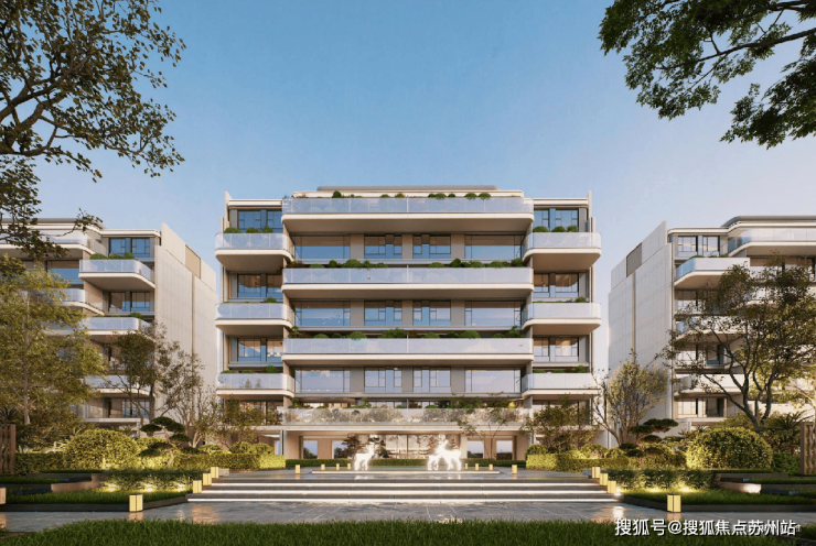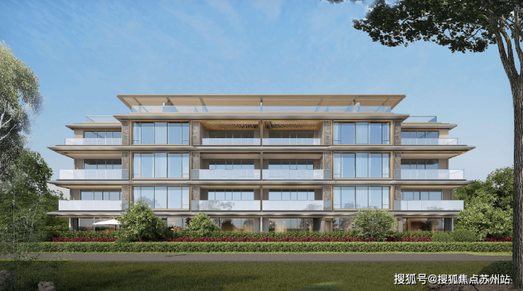 栋式天地叠院立面则采用现代简雅风格,勾勒太湖水韵纹脉线条,刷新苏州天际线。