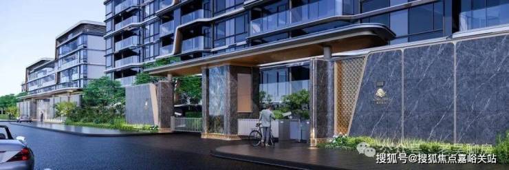 奢阔的社区入口,搭配蓝翡翠镜面奢石,为业主带来双重归家礼仪的同时,也为杨浦滨江增添了一处绝美的网红打卡地。
