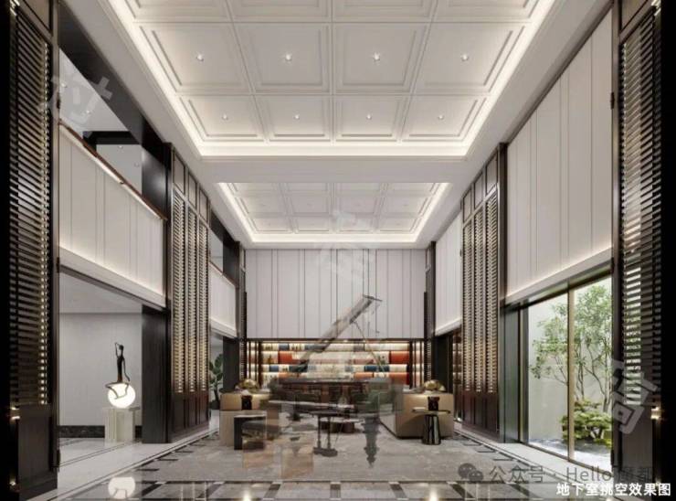 风貌产品中臻贵的双挑空设计,客餐厅约7.2米挑空,地下室约5.2米挑空;