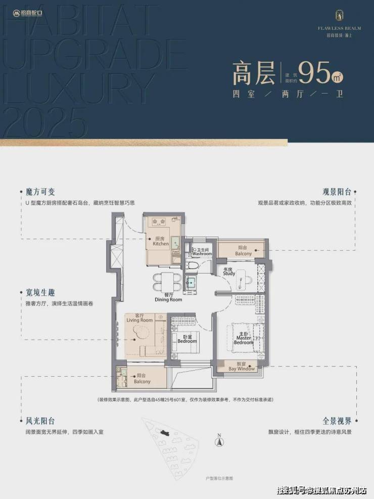 建面约95㎡高层,全系方正户型,双阳台设计,LDKB一体化设计,贯通动区轴线,打造温馨的家庭生活聚餐;☑️☑️招商臻境售楼处电话:400-8228-664☑️☑️