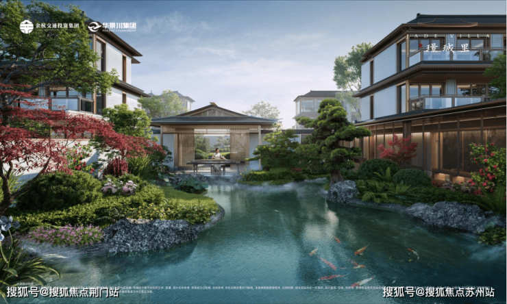 即将首发的叠墅立面,以真石材与木纹铝板为主基调,纵横穿插香槟金金属线条,形成独具特色的鎏金立面,则让整个建筑瞬间变得通透轻盈。外立面用上石材的低密,在整个杭州都屈指可数。景观园林则是取源唐代大师李昭道《曲江图》,营造七境归家礼序,将自然山水在家楼下如画展呈。