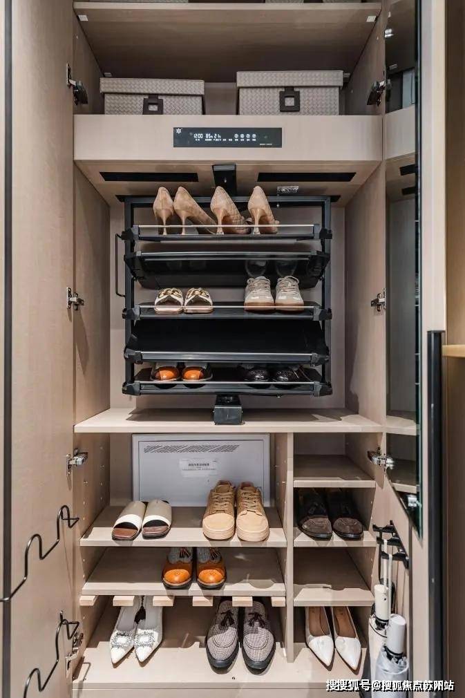 步入家的私享场域,玄关柜设计实现了整洁的空间秩序。金属壁龛与石材台面、岩板背景相互映衬,让整个储物空间看起来更加宽敞大气。进门后可随手放置雨伞、钥匙等外出用品,旋转鞋架、消毒精灵等丰富细节,足以打动每一个收纳达人的心。