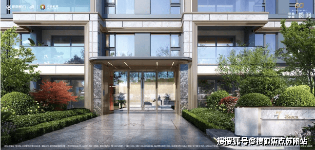 入户大厅的外墙上也采用香槟金铝型材与灰色石材,门头雨棚采用香槟金色弧形铝板装饰,搭配大玻璃面,尊崇感呼之欲出。