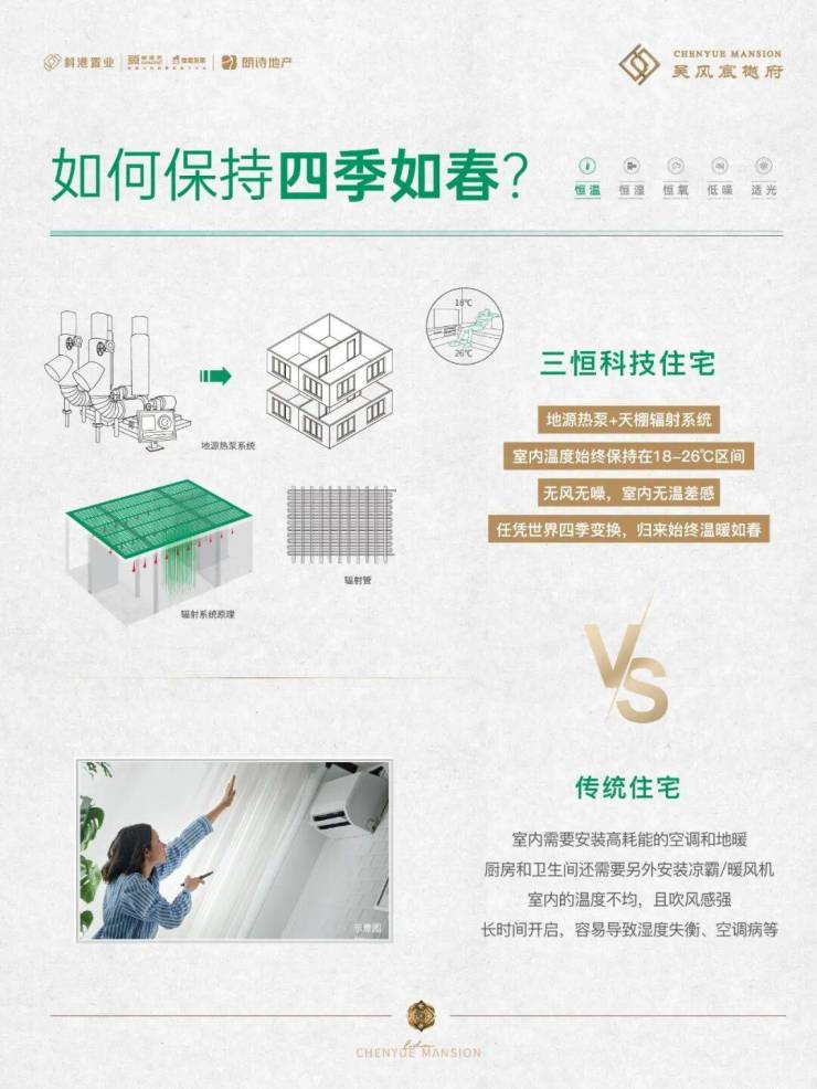 除了高标准精装,项目产品最大的亮点还在于搭载了朗诗科技系统,实现“恒温、恒湿、恒氧、低噪、适光”。