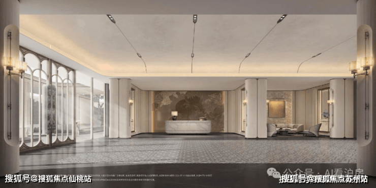从步入社区大门开始,约70米超大尺度门庭、奢华酒店般的港湾式落客,就将仪式感便顶格拉满;星级酒店大堂,内部多处装置融合非遗技艺美学,生活在尊贵与艺术之间巧妙平衡;进入下沉式中庭花园,归家路上移步异景;单元入户入口延续奢华酒店质感,采用奢石与铝板叠加的奢华设计,碰撞法式圆润线条,仿佛艺术殿堂。