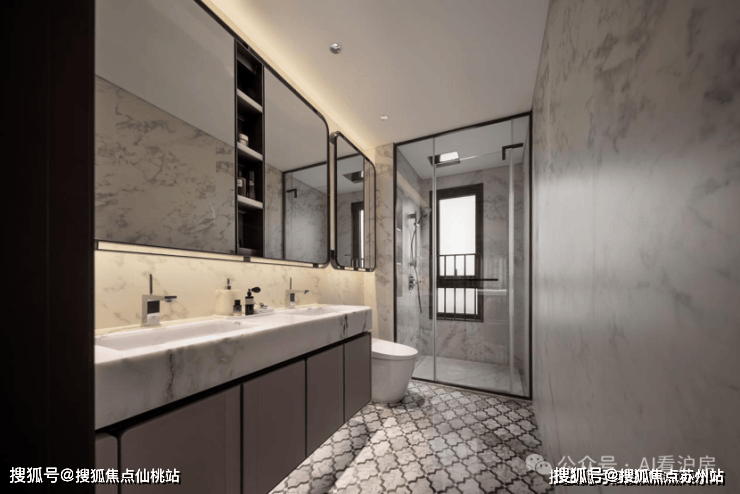 厨房方面,西门子或同档次品牌的燃气灶、抽油烟机、蒸烤箱、洗碗机、嵌入式冰箱五件套;还有细节上的一些配置,例如燃气热水器、末端直饮、凉霸等统统安排上了。