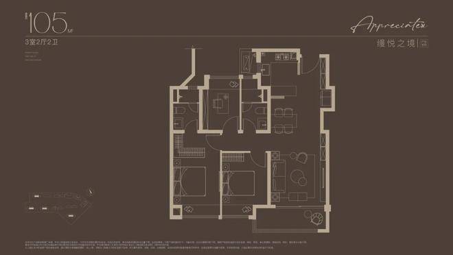 105㎡三房户型是三开间朝南的设计,约9.6米大尺度南向面宽,最大程度揽光入室。创新研发的S墙设计,预留冰箱专属位置,释放厨房使用空间;主卧采用套房设计,奢享独立卫浴和衣帽间。