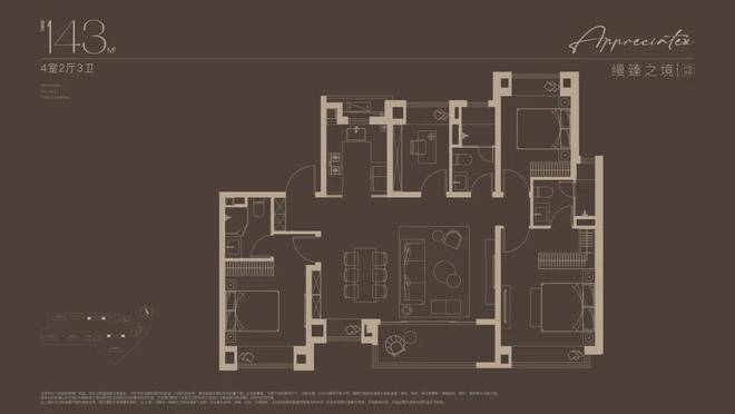 143㎡四房设计采用2梯2户的设计,极具私密性的入户门厅,彰显大宅归家礼序。约14米朝南面宽,搭配约7米尺度横厅,尽显大宅风范;东西双套房设计,满足全龄世家的居住需求。