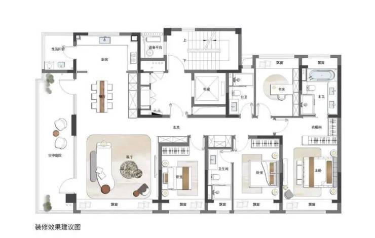 建面285-316㎡,南北双入户设计,全套房格局搭配星空露台,毛坯交付赋予个性化定制空间。作为高铁新城近十年唯一的低密宅地,其稀缺性成为顶豪客群的价值锚点。