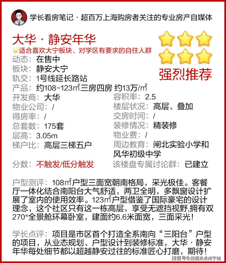 静安大宁、虹口新盘,3房总价约1600万起,若想买中区房源,要到1800万级;而大华·静安年华108㎡3房,全楼层总价基本1300多万,门槛温柔太多。