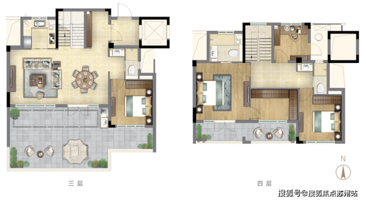 春风湖滨售楼处电话:400-8228-664☎【预约热线】约166㎡的上叠产品,三、四两层均带大面积露台,面积尺度可以按中叠产品等比放大,