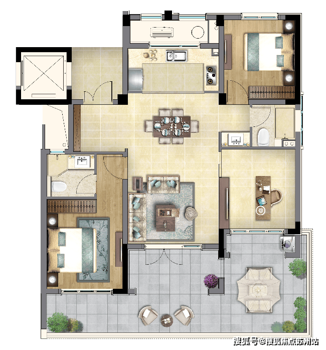 此外,阳台露台都做了防水、防腐、排水和承重加强,预留了种植池,可做成小小的私家农场。