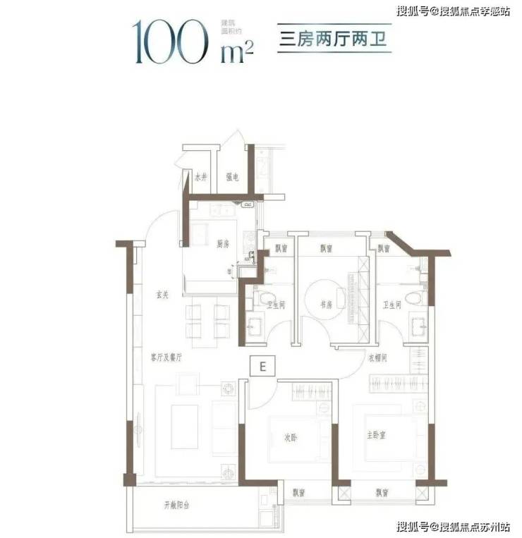 户型特点:3开间朝南,全屋阳光充足;L型厨房转角移门设计,最大化空间视野;四飘窗设计,通透空间享受;动静分区,亲密有度;套房式主卧,容纳私谧生活点滴;
