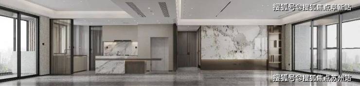 项目在空间尺度全新跃级, 超高的窗墙比,开阔的宽厅,配以全景落地窗,带来全新的观湖视觉体验,可谓“站在家中,太湖是景;站在湖岸,家是风景”。