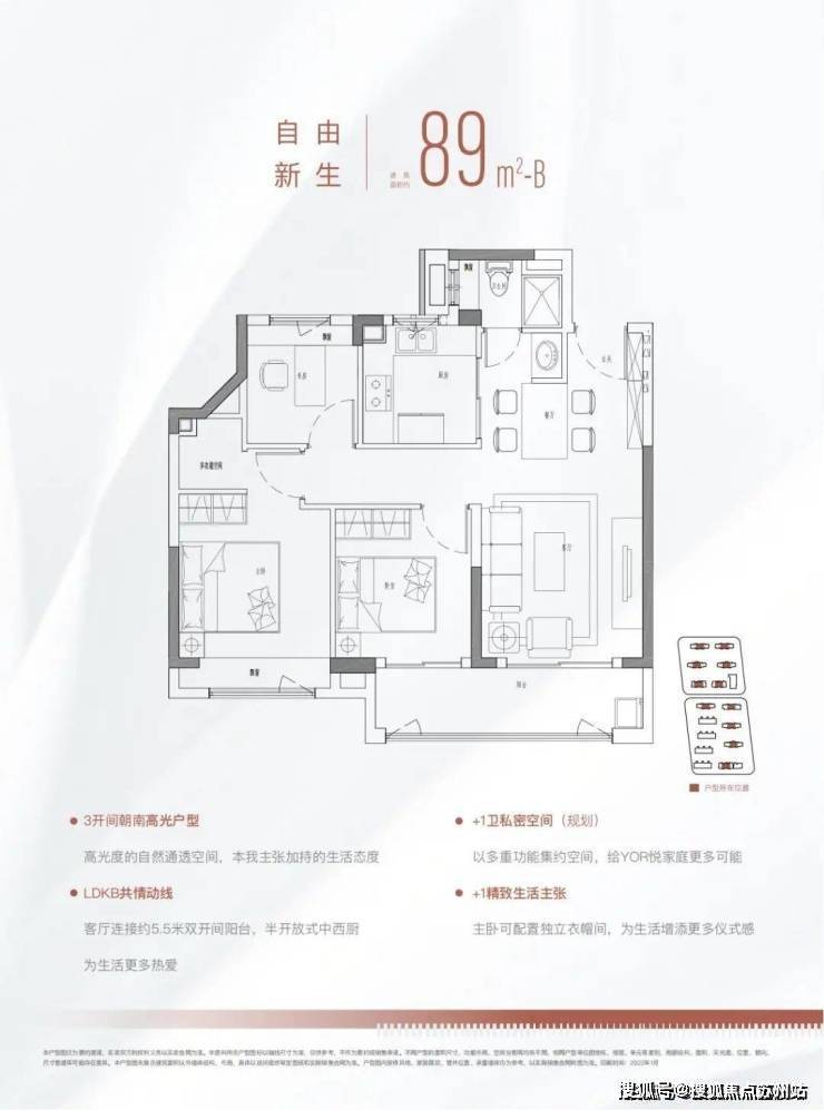 「金融街美兰金悦府售楼中心电话:400-812-3664(温馨提示:本项目参观样板间采取预约制,为了不耽误您的行程,过来参观请提前来电进行预约看房或咨询项目详情)】金融街美兰金悦府的89㎡B户型3房双开间阳台的 面宽达到了5.5米,三开间朝南,格局方正,干湿分离,非常适合自住!
