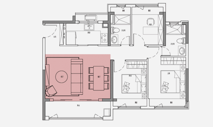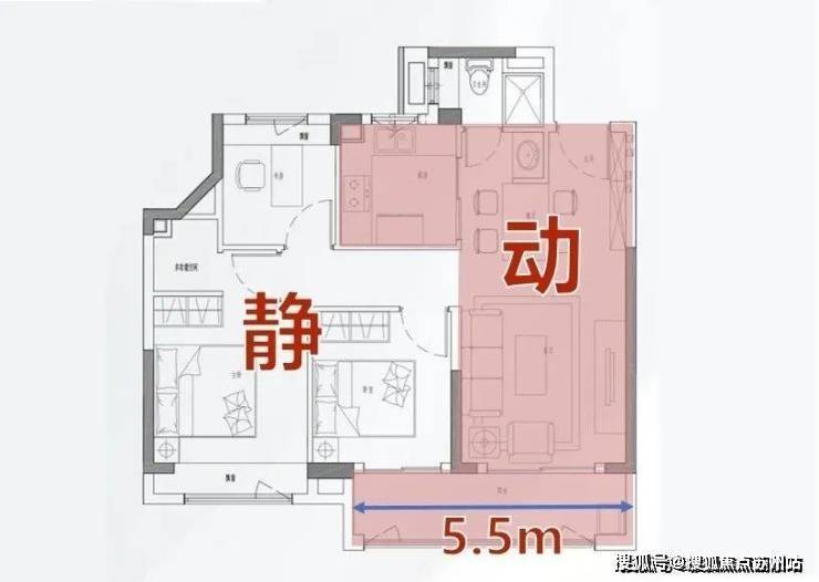 不仅动线更加合理,动静互不干扰,保证使用者的空间体验的舒适性。而且减少了过道带来面积浪费,给住户带来了更强的空间体验感。