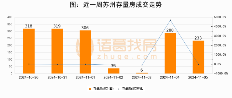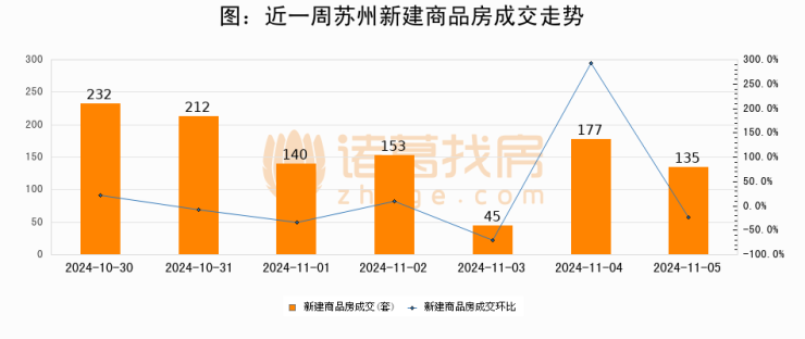 【苏州成交日报】11月05日新房成交135套、二手房233套;涨价房源352套