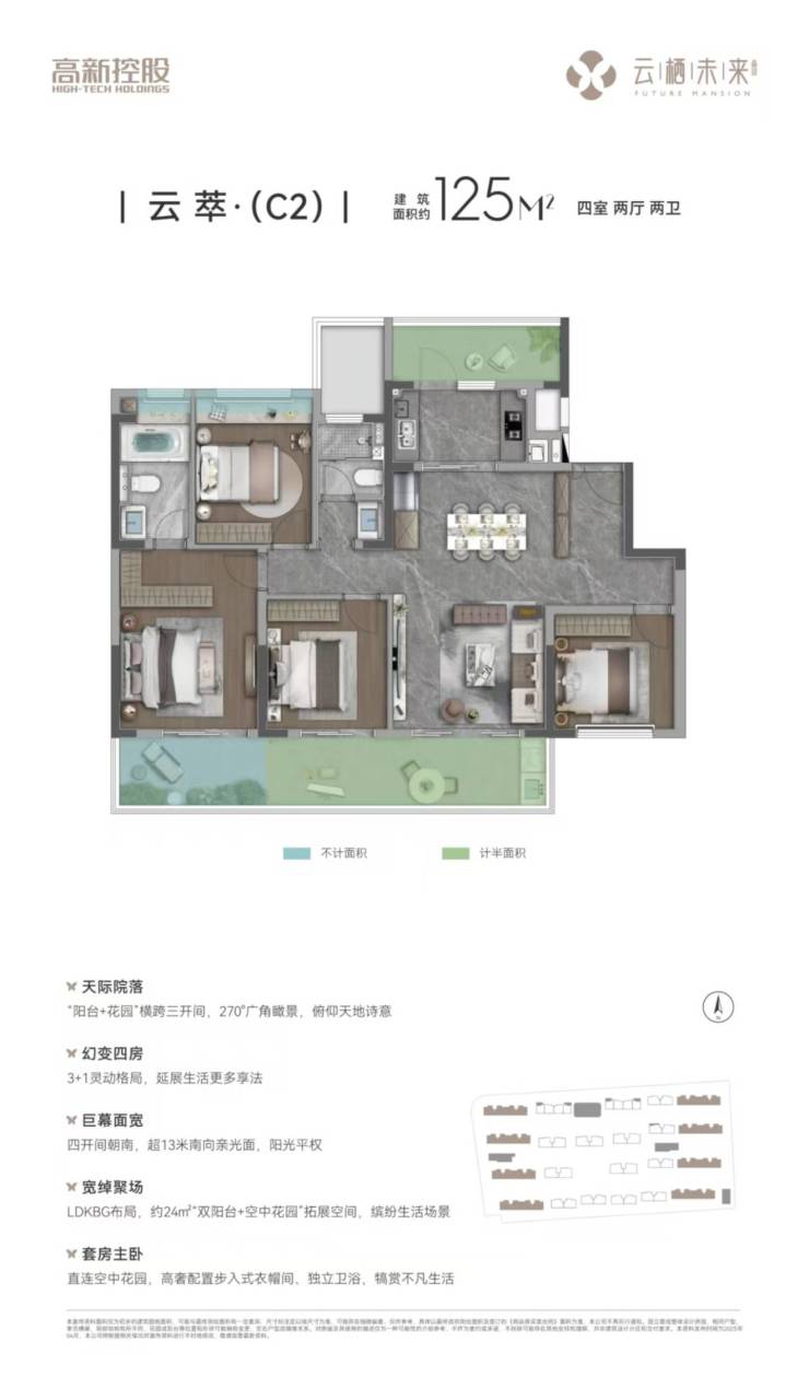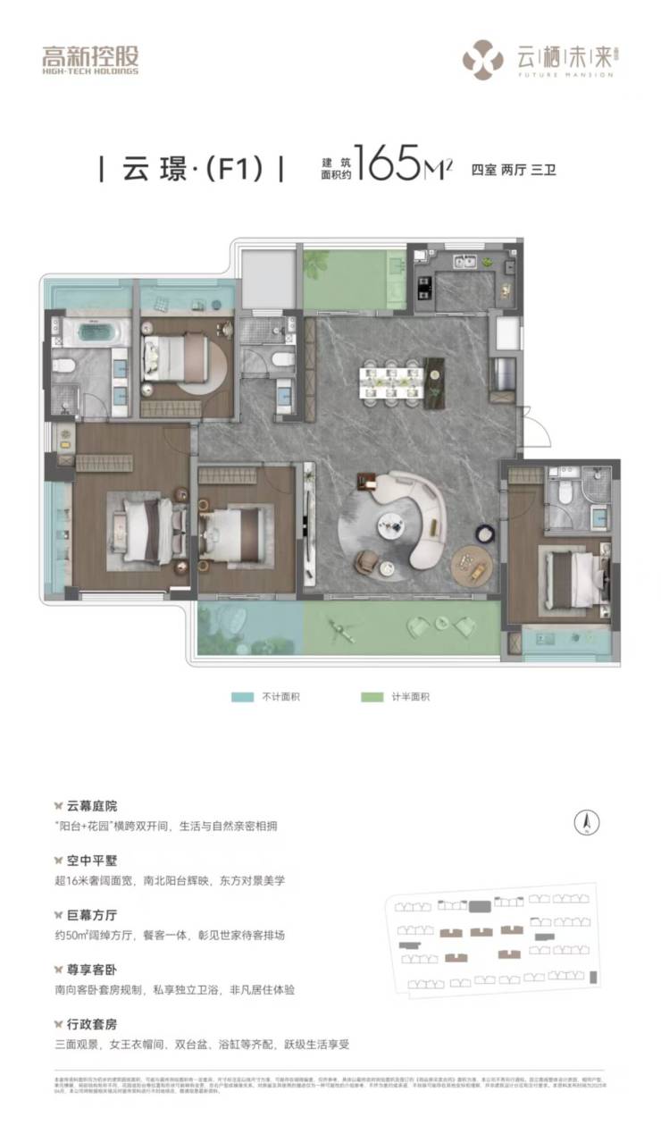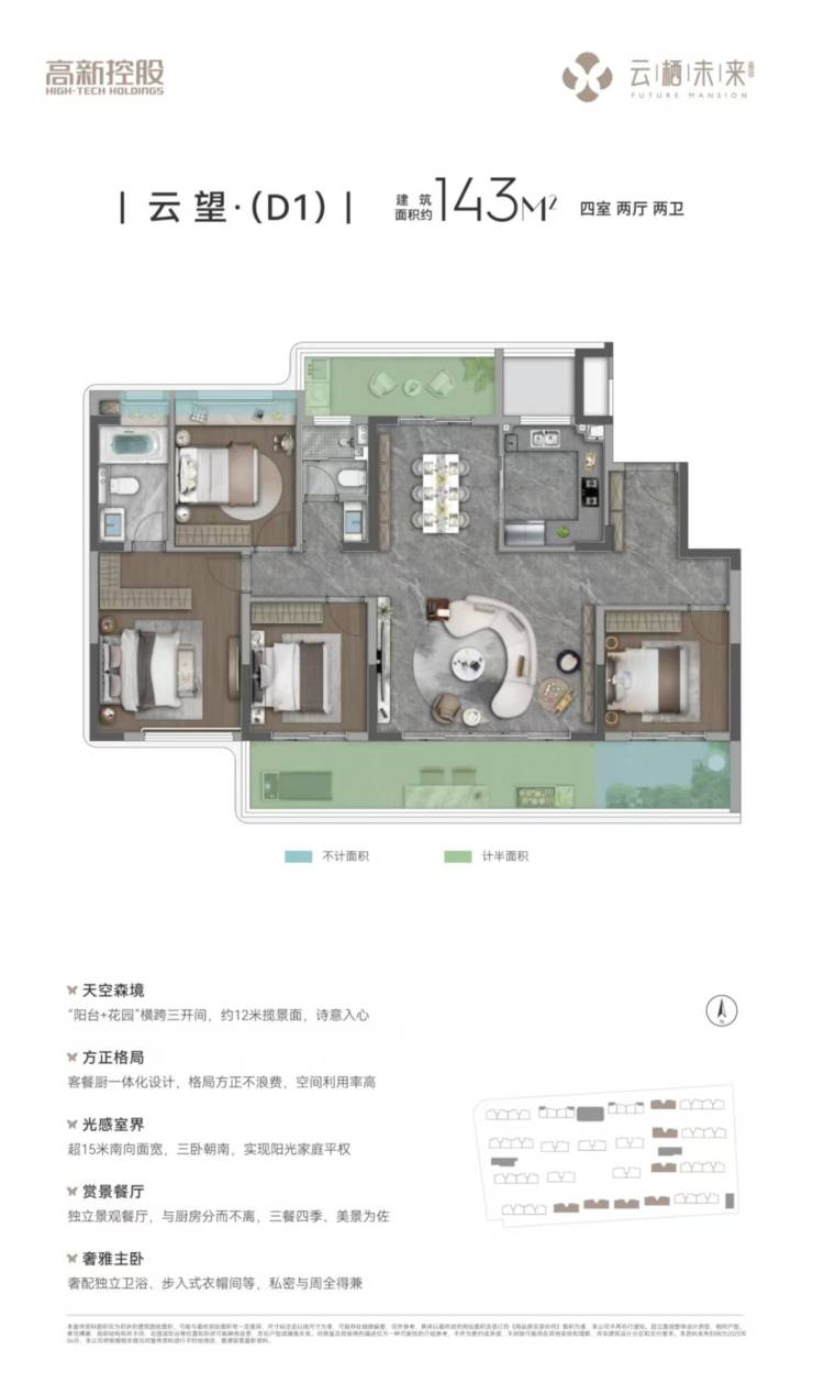 空间革命性突破:采用LDKBG五维交互布局(客厅+餐厅+厨房+阳台+花园一体化),143㎡户型南向面宽达15.2米,部分户型使用率超95%,主卧含衣帽间、独立卫浴及观景飘窗。