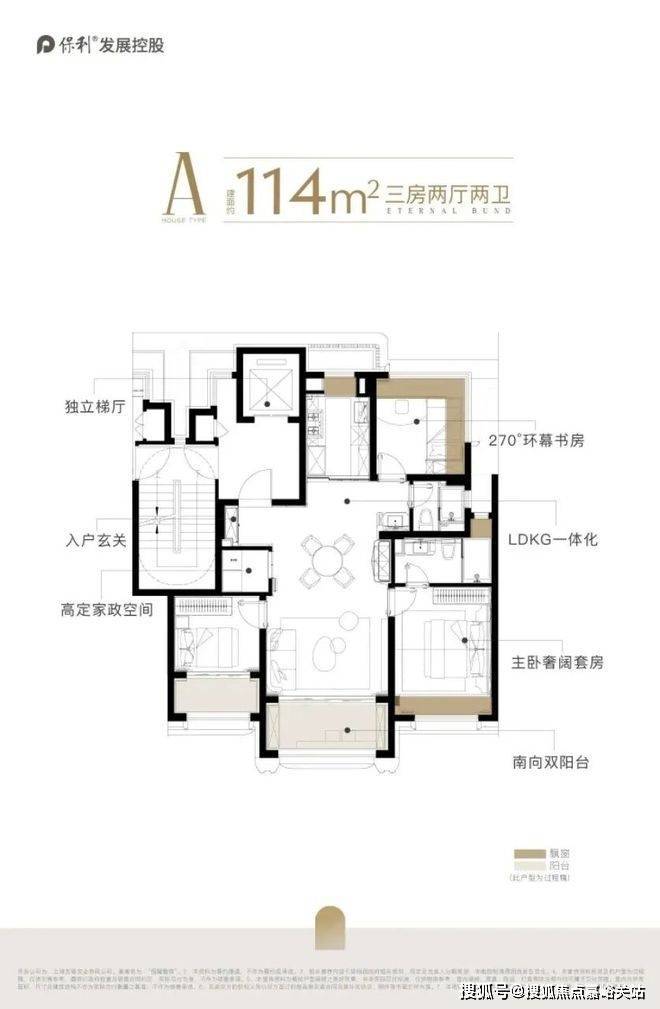 而且它定位纯改善,没有做小户型拉低整个社区客群的门槛。起步户型就是114㎡,三开间朝南,总面宽能达到约10米,舒适度还不错,对改善家庭来说比较友好。
