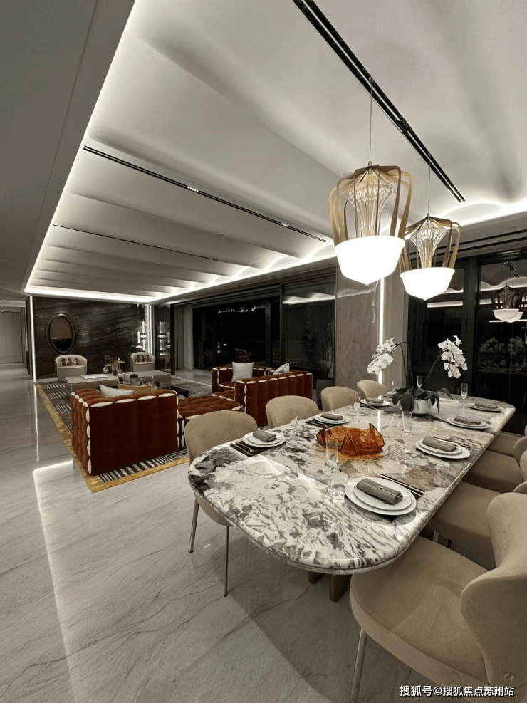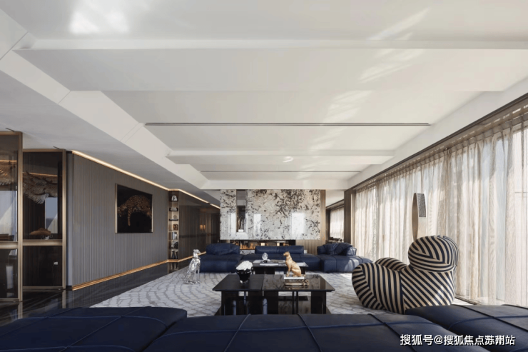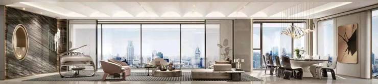 大平层不像别墅一样强调垂直空间,而是更注重整体的大空间和平面感,给人自由开阔的感受,更加符合高净值人群逐渐找回自我、找回生活的新状态。