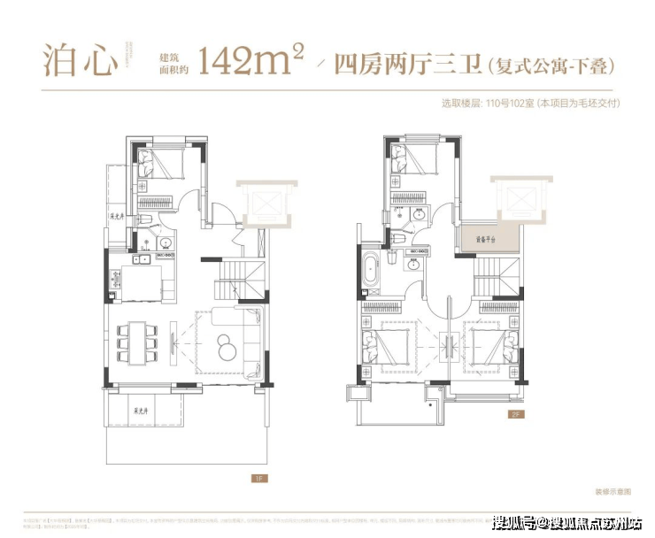 叠拼别墅:叠拼别墅总计四层,由上层和下层组成,上层的建筑面积大约为139平方米,而下层的建筑面积约为142平方米。上层的139平方米空间内设有四室两厅三卫,其特色在于阳台、露台以及飘窗的巧妙设计,露台平时可用于烧烤、休闲娱乐和桌面游戏等,空间感极佳。