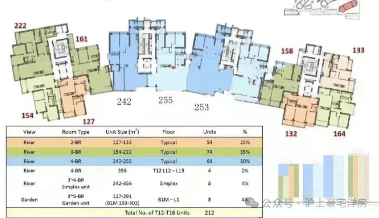 凯旋门户型设计多样,满足不同业主需求:社区总共有2居-4居,135-345平14种正规户型,2居室面积135-182共4种户型;3居室189-318平共4种户型;4居室280-345平6种户型。还有顶层复式、下跃以及联排别墅。层层有阳台,户户落地窗,大部分户型南北通透观江。