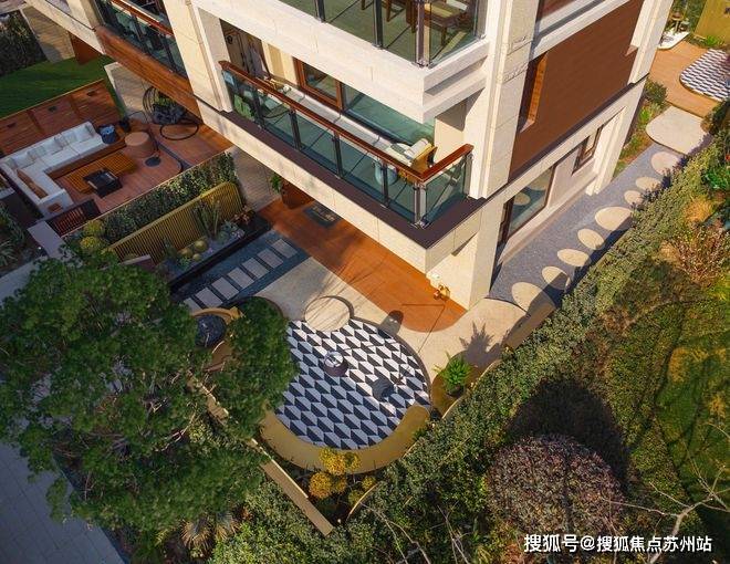 通过景墙、花圃、绿植等的巧妙搭配,让业主穿景归家、移步异景,走出院子、迈入露台,俯仰之间皆是郁郁葱葱。