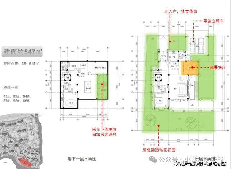 建面约547㎡独栋别墅,花园面积351-514㎡