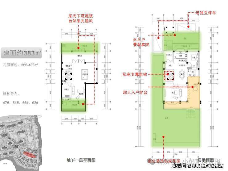 建面约383㎡双拼别墅,花园面积266-403㎡