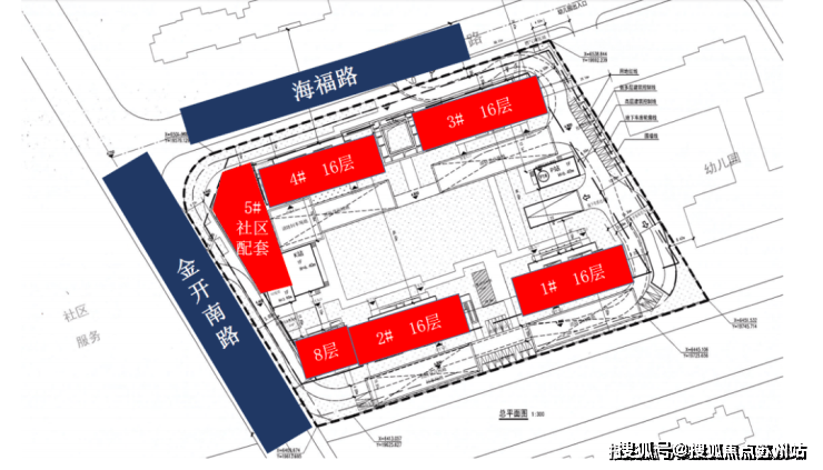 目前设计方案已发布,计容面积约2.72万方,普通商品房用地占地面积约1.36万方,容积率2.0,限高50米,住宅套数下限288套,套均面积约94.4㎡,主要由4栋16层住宅和1栋社区配套组成。