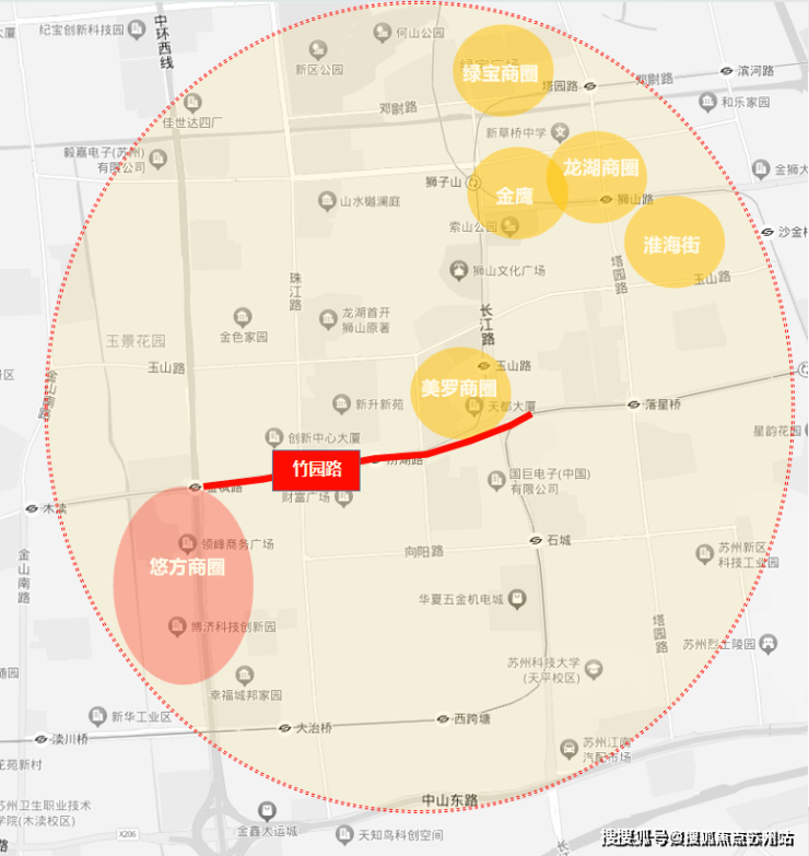 还有两条高架——中环西线、苏福快速路,相当于拥有内环+中环两条线,和狮山核心、湖西核心的配置是一样的。