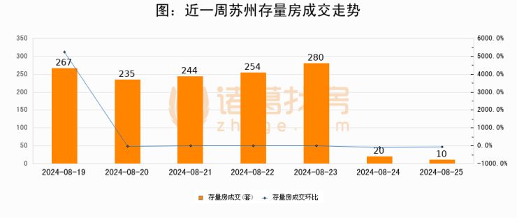 从存量房来看,2024年08月25日苏州存量房单日成交10套,比昨日减少10套,环比下降50%。从近一周存量房成交来看,苏州存量房日均成交套数为187套,08月25日单日成交10套,低于近一周平均水平94.7%。