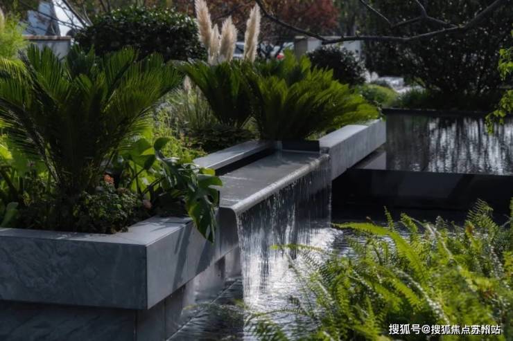 流畅的布局与干净的线条、在虚实之间完美结合。温润的绿意、柔美的水景、硬朗的石材、不同的肌理在统一空间中相互呼应。目光所及的画面,温雅而又华丽。留白和光影下,蕴藏着一股静谧的诗意。