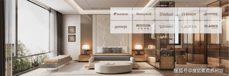 在叠墅装修标准上,延续中建三局一贯的顶配风格,三大件选用大金、霍尼韦尔、威能品牌,给到舒适享受。厨房配置威乃达、SMEG、铂浪高等一线国际奢牌,奠定高端质感。卫浴选择劳芬、汉斯格雅、杜拉维特等超级大牌,奢华质感扑面而来。