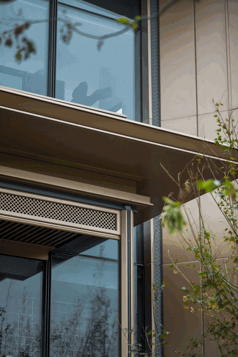 光传承还不够,阅湖之星还想再创新。研发团队选用铝板、云纹铝板、石材、LOW-E玻璃、金属格栅等现代材料,搭配高窗墙比、几何等设计手法,强化现代建筑的精致感,走出了一条古韵新雅的路。