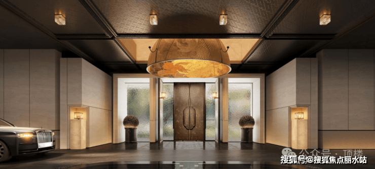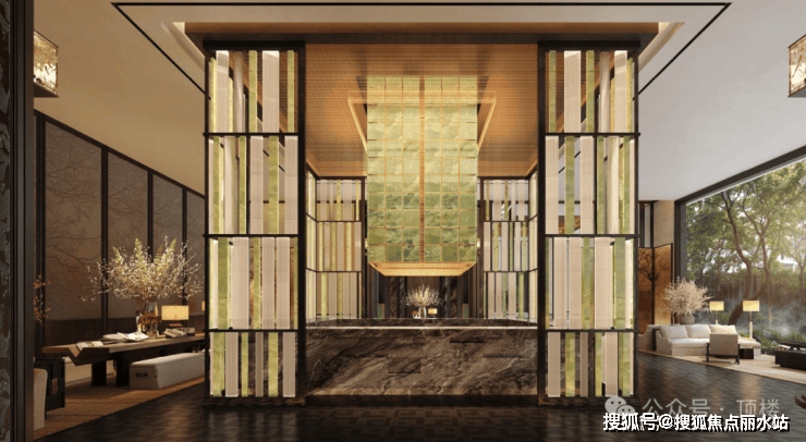 总长约88米、苏州首座大尺度流光造型宝顶及铂金长屏地标门厅;造价约150万、环岛中央非遗盆景