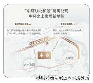 交通方面:项目紧邻长江西路地铁站(直线距离约150米),1站江杨南路,5站复旦,7站五角场.中环线北扩段明确兑现,军工路快速路25年开工,长江西路快速路列入上海市重大工程清单预备项目,快速链通城心,随着中环线北扩段的政策明确,淞南将正式进入中环时间.未来经逸仙高架,进入南北高架、内环高架、中环高架,可快速链通南北上海.