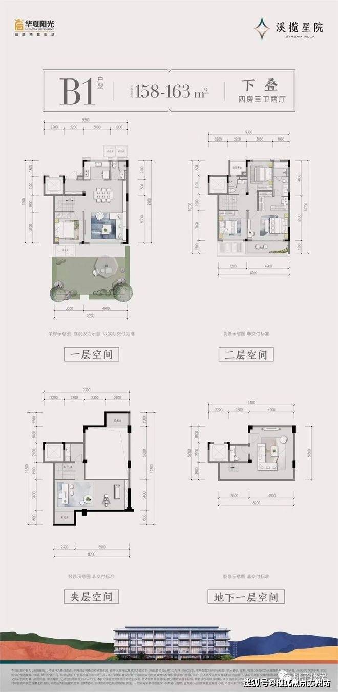 建面约158~163㎡下叠:地下室主题空间打造/餐客连厅/奢华主卧套房/独立三房