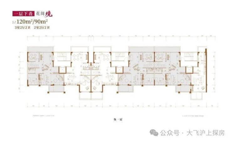 建面约120㎡3房2厅2卫/90㎡2房2厅2卫(一层下叠):