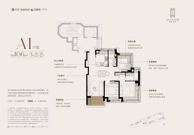 东1#边套:全屋飘窗+约270°的转角飘窗,实际空间感十分优秀!