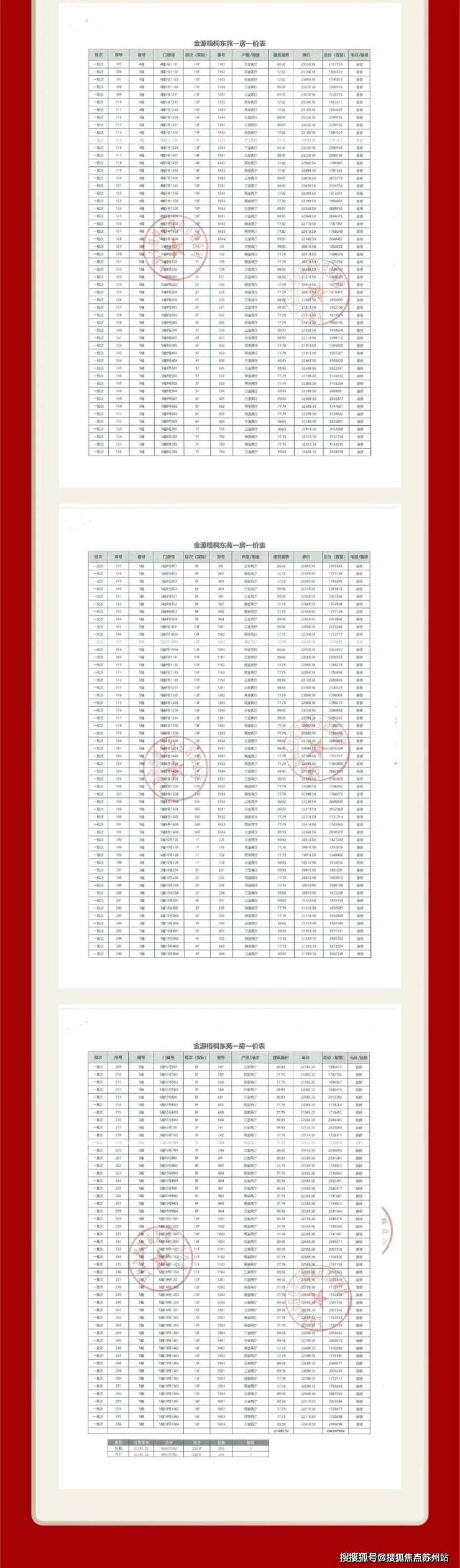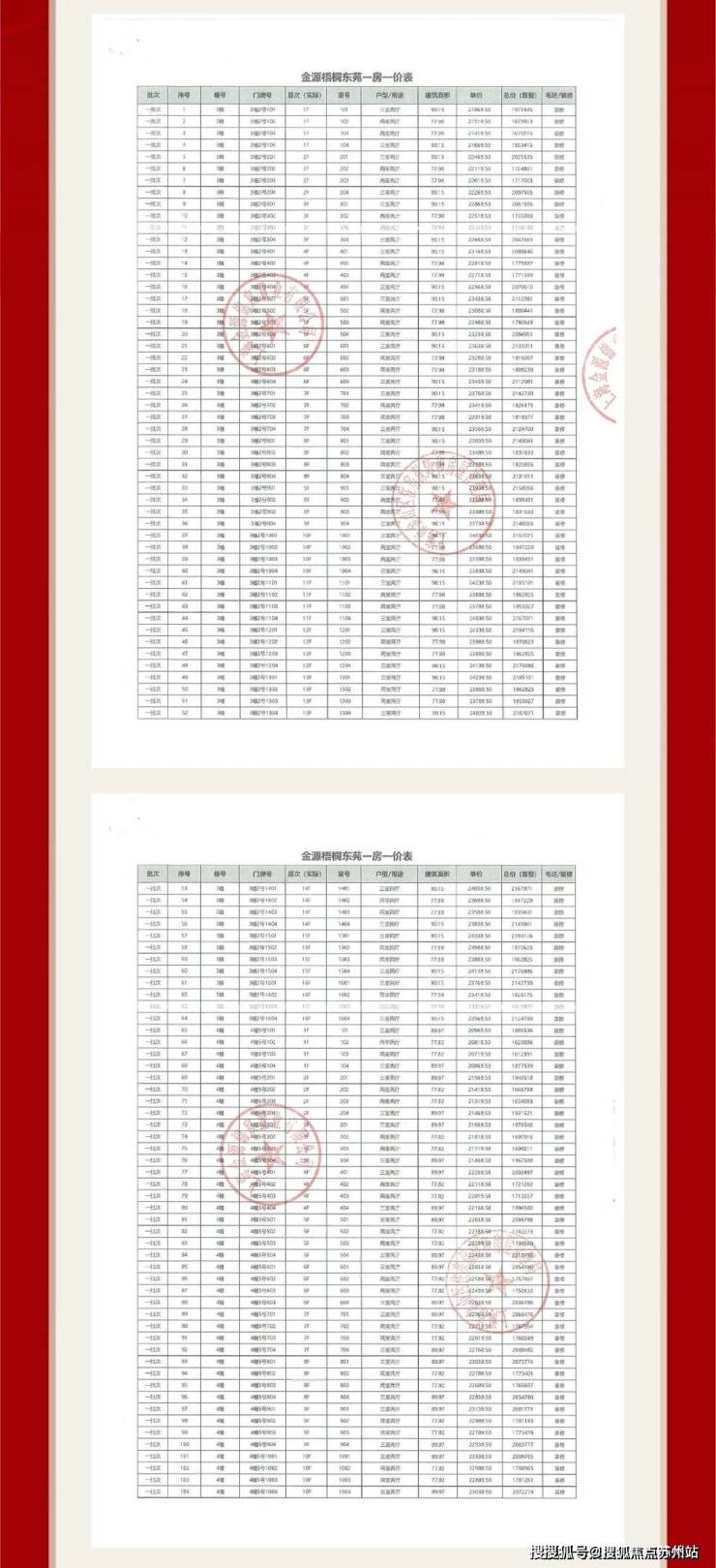 项目一房一价表